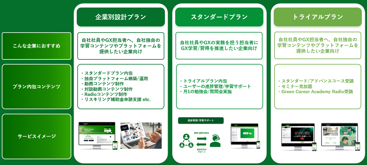 To solve these challenges, Green Career Academy provides a “GX-specialized learning platform” that addresses the GX talent shortage by training and enabling practical learning.